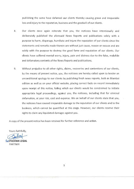 ഇത്തരം അടിസ്ഥാനമില്ലാത്ത വ്യാജ ആരോപണങ്ങള് റിപ്പോര്ട്ട് ചെയ്യുന്നത് അവസാനിപ്പിക്കുന്നതിനായി ആവശ്യമായ എല്ലാ നടപടികളും കമ്പനി തുടക്കം കുറിച്ചു കഴിഞ്ഞു(നിയമ നടപടികള്)